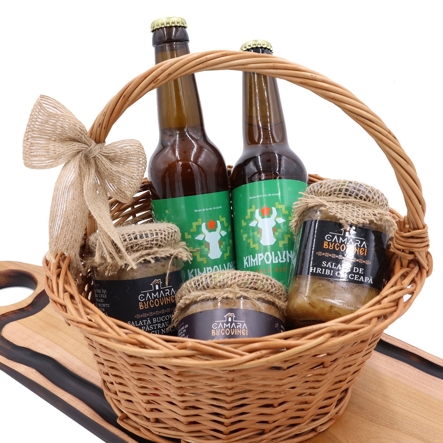 Un coș tradițional bucovinean creat pentru iubitorii de bere artizanală și de gusturi locale autentice, care îmbină savoarea preparatelor tradiționale cu bucuria momentelor simple.