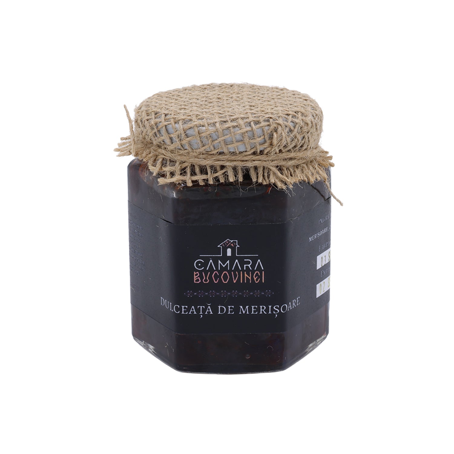 Savurează energia muntelui în fiecare linguriță cu Dulceața de merișoare (200 g) de la Cămara Bucovinei, preparată artizanal din merișoare proaspete de pădure, zahăr și lămâie.